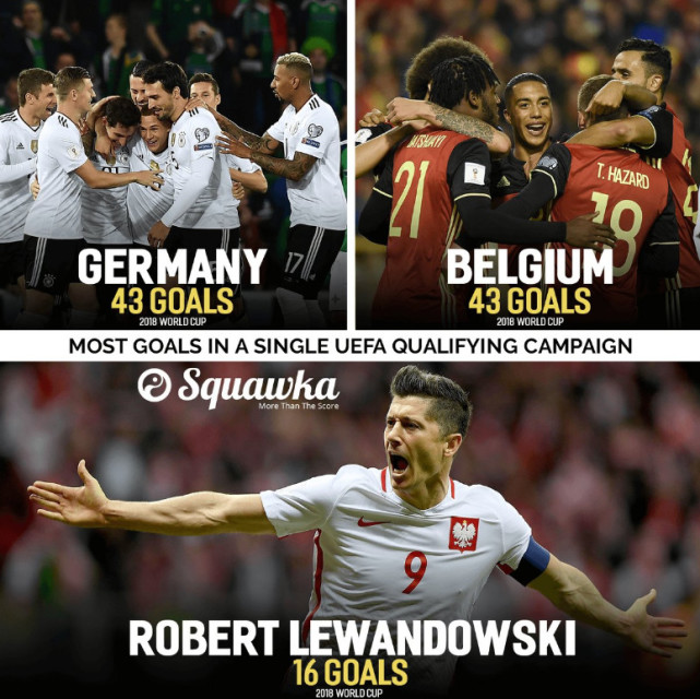 波兰当家射手莱万多夫斯基,本届世预赛打入16球,同样创单届世预赛新纪录,并力压C罗,获世预赛金靴。