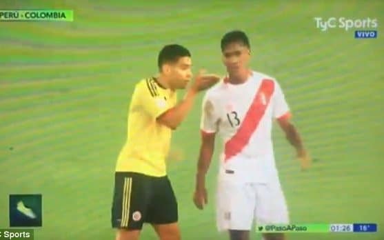腾讯体育10月12日讯 据英国《每日电信报》报道,在昨天上午进行的世预赛南美区的比赛里,哥伦比亚1-1战平了秘鲁,对于两支球队来说,这是一个皆大欢喜的结果,因为哥伦比亚拿到了出线资格,而秘鲁则获得了附加赛的资格。在比赛过程中的一幕却引起了争议,因为法尔考有告知对方踢默契球的嫌疑,而在赛后接受采访时,法尔考也大方的承认了这一点。
