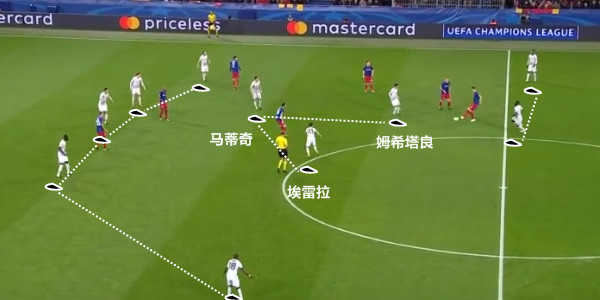 曼联352阵型下,后腰位置马蒂奇,埃雷拉和姆西塔良出任中前卫
