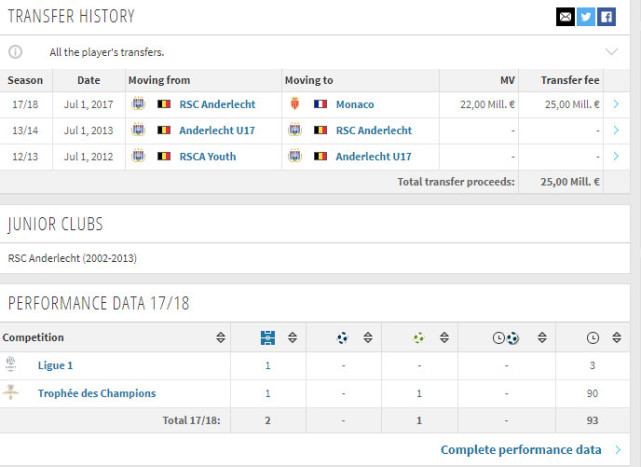 在经历了上赛季无限风光之后,上赛季法甲冠军摩纳哥为了补充失血过多的现状,签下了蒂莱曼斯,转会费为2500万欧元。