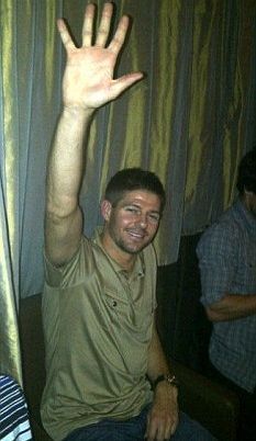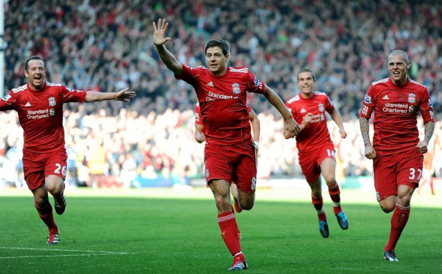同年10月,在英超的双红会赛事里,杰拉德用一记非常精彩的任意球,敲开了曼联大门。庆祝时刻,杰拉德再次竖起五指,狂奔欢庆。那一刻的球场里,利物浦球迷们乐到癫狂,他们疯狂的爱着他们的英雄,男人在挥着颤抖的拳头怒吼,女人愿意为他脱掉每一件衣服。而那些曼联球迷则气的咬牙切齿,面红耳赤,他们在问:那个人也是一代巨星了,怎么如此的没有风度?他们在问候杰拉德家里的每位女性亲属,在自己的脑子里将他凌迟千刀!