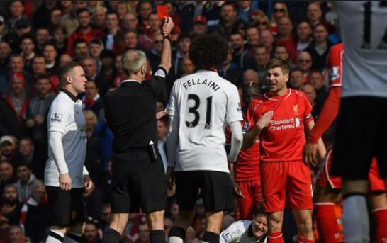 2015年3月,杰拉德个人最后一场双红会,下半场,杰拉德替补出场。但是戏剧性的一幕发生了,在替补出场区区38秒之后,杰拉德在拼抢中左脚结结实实的踩在了埃雷拉的小腿上!当值主裁马丁-阿特金森毫不犹豫的向红军队长直接出示红牌!以这样的方式上演最后一场双红会,这令人慨叹唏嘘。