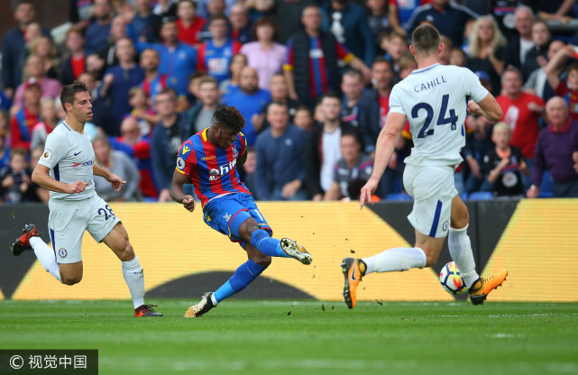 第45分钟,马马杜-萨科前场抢断威廉后直塞,扎哈带球突入禁区左侧小角度右脚推射,皮球绕过门将钻入球门右下角,水晶宫2-1领先切尔西。