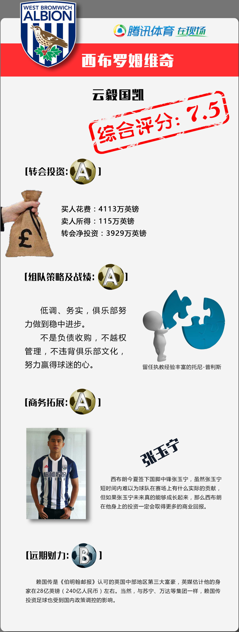 云毅国凯收购英超西布朗花费了将近1.5亿英镑,他们对西布朗的经营采取了循序渐进的策略,球队去年并没有像英冠的中资球队一样疯狂买人,而只是对球队进行了小修小补。