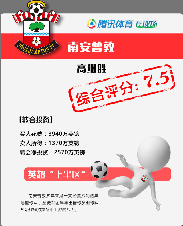 在财阀云集、通货膨胀的英超,南安普敦多年来是一支经营成功的典范型球队,圣徒军团年年出售球员回笼资金,但球队却始终维持英超中上游的战力。随着中国商人高继胜入主南安普敦,圣徒的运作方法有了一定的改变,球队今夏并未出售范迪克等核心骨干。