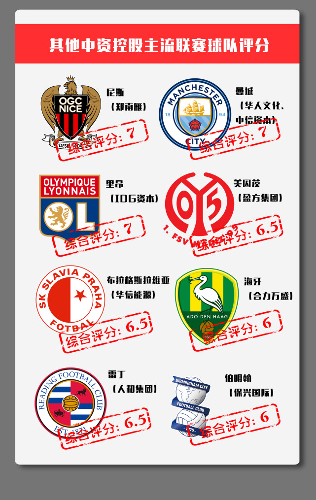 腾讯体育讯 目前,欧洲已有近30家球会有中国资本的控股或者入股,中国商人搅弄欧陆足坛风云已是不争的事实。腾讯体育邀请众多欧洲、中国的媒体界权威,制作《中国资本欧陆风云点评》,针对中资的运作进行点评和解读,本文点评级别分别为S、A、B、C。【】【】