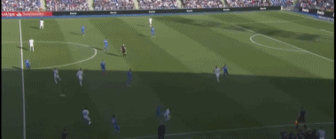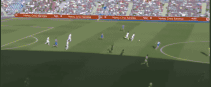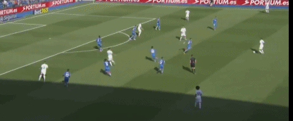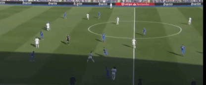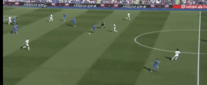 由于克罗斯的站位更靠近左路,赫塔费防守的重心也集中在这一侧。在此之下,巴斯克斯频繁插上制造纵深,克罗斯也总能迅速发现空当并准确的将球转移出去。皇马在阵地进攻中难以进行有效渗透以及马塞洛缺少套上时非常依赖巴斯克斯和阿什拉夫的突破能力,这也是皇马中场缺少依靠加速突进能力打破缺口球员的真实写照(科瓦契奇/莫德里奇)。