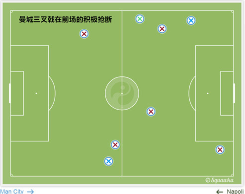 曼城更擅长高位逼抢,这是瓜迪奥拉的看家法宝。而相比于曼城,那不勒斯无论是门将雷纳,还是中卫阿尔比奥尔、库利巴利,抑或后腰迪亚瓦拉,出球能力都无法与对手相提并论,所以面对蓝月的上抢就容易出现失误。年轻而有活力的斯特林+热苏斯+萨内在这方面贡献良多,忠实执行主帅的战术意图,合力完成1次抢断和4次拦截。