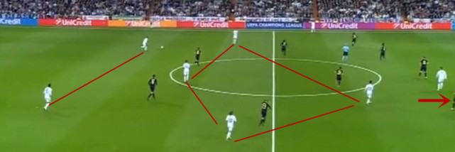 而皇马的阵型依然是惯用的4-3-1-2和菱形4-4-2,伊斯科依旧拥有很大的自由度,他可以审时度势的选择进攻方向。双前锋名义上是C罗和本泽马搭档,但实际上本泽马站位更靠后一些,他跑动范围很大。除了经常回撤到中场参与推进串联进攻外,还要拉边协助边后卫插上助攻。这省去了C罗很多麻烦,葡萄牙人可以专心埋伏在禁区等待射门机会。