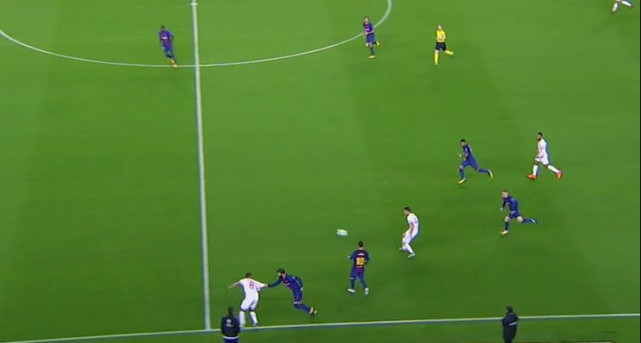 皮克与布斯克茨接连向裁判抗议,示意并非故意手球,不过从规则角度而言,用手完成射门并进球,主裁的确可出示黄牌警告,且主裁也征询过底线裁判意见。皮克之前因战术犯规,已拿过一张牌,不幸因此被驱逐,而这也是巴萨全场仅有的两张黄牌。