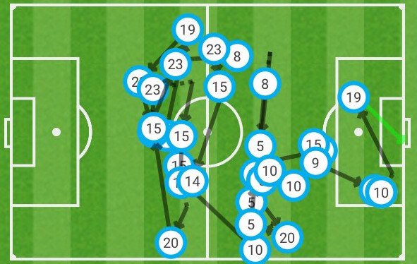 比起恩里克时代,巴尔韦德更重视控球,缩短传球平均距离,以提升传球精确性。巴萨此役上半时控球率高达78%,全场传球也多达739次,传球总体成功率92%。巴萨打入第3球时,全队经过连续28次传递,最终由梅西突破助攻,队友前后三人包抄,最终是迪涅收获巴萨生涯30战以来的第2个进球,此球是全队默契配合的产物。