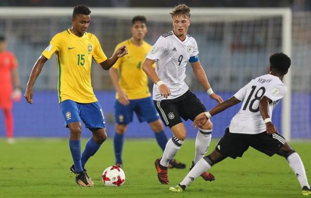腾讯体育讯 北京时间10月23日凌晨,2017国际足联U17世界杯1/4决赛的最后一场交锋,巴西U17队2比1逆转击败德国U17队挺进四强,在半决赛中他们将和英格兰U17队展开对决。第21分钟,阿尔普点球为德国破门。第71和77分钟,维维尔森和小保利尼奥各建一功助巴西反败为胜。