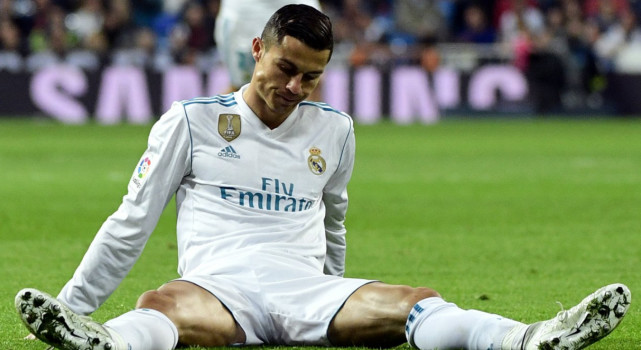 此役最令C罗不堪回首的一个瞬间,发生在下半场第50分钟,当时皇马中场卡塞米罗将球斜传给前场左肋部的C罗,葡萄牙巨星在大禁区角附近得球后试图以“连停带过”的方式突破猛扑上来的对方防守球员。可惜这一次C罗并没有掌握好趟球的力度,皮球距离他的右脚太近,葡萄牙巨星脚下拌蒜并直接摔倒在地。