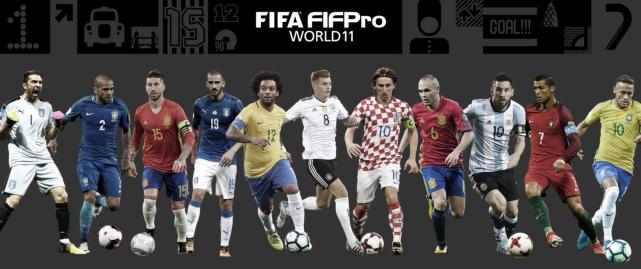 2017年度最佳阵容(433):布冯/阿尔维斯、拉莫斯、博努奇、马塞洛/莫德里奇、克罗斯、伊涅斯塔/内马尔、梅西、C罗