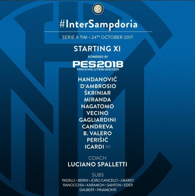 腾讯体育讯 北京时间25日凌晨2时45分,意甲第10轮一场焦点战,国际米兰坐镇主场迎战桑普多利亚队。腾讯体育将带来视频直播。赛前双方首发阵容已公布。国米方面,没有对首发阵容进行任何轮换,完全维持了上周末对阵那不勒斯的出场阵容。布罗佐维奇因伤缺席,坎德雷瓦、佩里西奇、伊卡尔迪组成攻击线搭档,若奥-马里奥、达尔伯特等传闻要出场的球员仍然是出任替补。