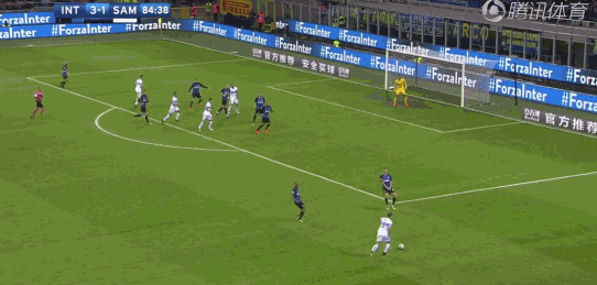 第63分钟,伊卡尔迪妙传,佩里西奇突入禁区左路小角度劲射,球打中门框弹出!第64分钟,夸利亚雷拉禁区右路精确传中到后点,科武纳茨基距门3米处抢点推射破门。桑普多利亚1-3迫近比分。
