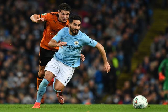 第25分钟,京多安妙塞空档,斯特林禁区右侧得球没有果断起脚攻门,回防的狼队后卫救险。第28分钟,斯特林右侧得球回做,伯纳多-席尔瓦第一时间起脚攻门,球被后卫挡出。