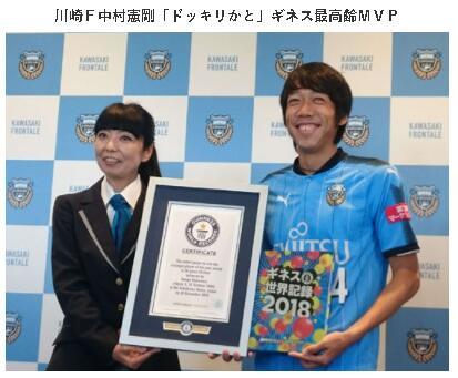 吉尼斯给中村宪刚颁发了吉尼斯世界纪录证书,他表示:“我做梦也没有想到过能拿这一奖项!”值得一提的是,目前川崎前锋在J联赛排名第2,中村宪刚依然有蝉联MVP的可能性,但他表示自己现在不会想这些,而是要带领球队去冲击冠军。