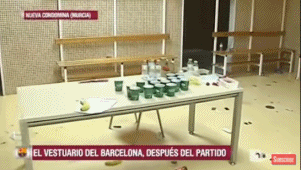 腾讯体育讯 北京时间10月27日,英国媒体《每日邮报》曝光了一组巴萨国王杯客场对战穆尔西亚队后更衣室的视频,从视频中看,巴萨在客场更衣室内摆放着吃剩的水果与饮料,更衣室一片狼藉,这也引发了媒体的批评。