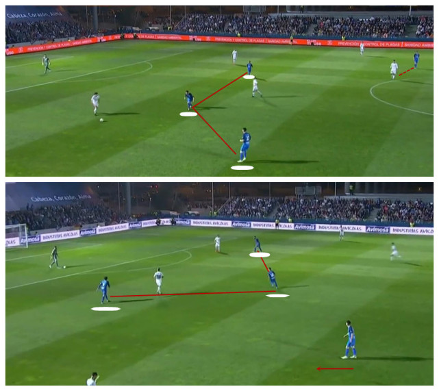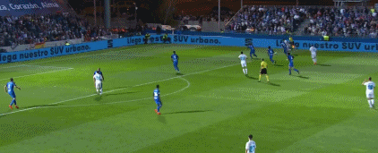 富恩拉布雷达没有如想象中从开场就摆大巴严防皇马,而是依靠整体大范围的跑动在高位限制皇马出球,在阵型过于靠上缺少足够接应点的情况下有许多失误。同时富恩拉布雷达的反击速度也非常快,但锋线把握机会能力还是稍弱,在逼抢过后已没有更多爆发力继续向前威胁球门了。