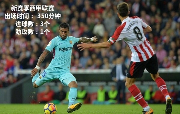 保利尼奥数据,他在西甲联赛350分钟的出场时间里,直接贡献了4个进球