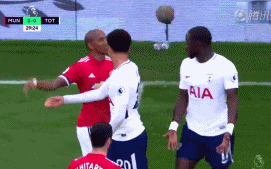 在一旁的阿里显然不愿意看到队友吃亏,于是上前将阿什利-扬拉住。后者马上将矛头转向了阿里,两人脸对脸顶了牛,互喷垃圾话,场面一度变得非常火爆。曼联前锋卢卡库随后也加入战团,一把将阿里推开,这名21岁中场准备息事宁人,就此退去。但阿什利-扬不肯善罢甘休,隔着数人仍对着阿里大放嘲讽技能,显然在这场争执中占据了上风。