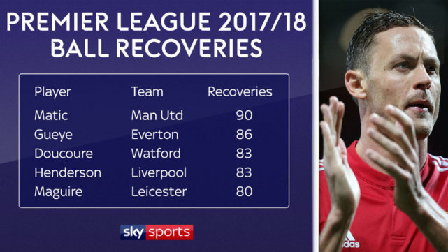 马蒂奇的断球数据显示,他的工作一如既往的富有成效。有趣的是,穆里尼奥让马蒂奇与同样善于铲断的埃雷拉一起搭档,而在排名前六的俱乐部中,埃雷拉是铲断次数最多的球员。时间会告诉我们这笔转会的成败与否,但在出售马蒂奇之后,切尔西又签入了只比马蒂奇小18个月的德林克沃特,则引发了更多的怀疑。穆里尼奥最近恶作剧般的表示,马蒂奇正处于他职业生涯的巅峰期,而切尔西周日或许会再次领教他的能力和状态。