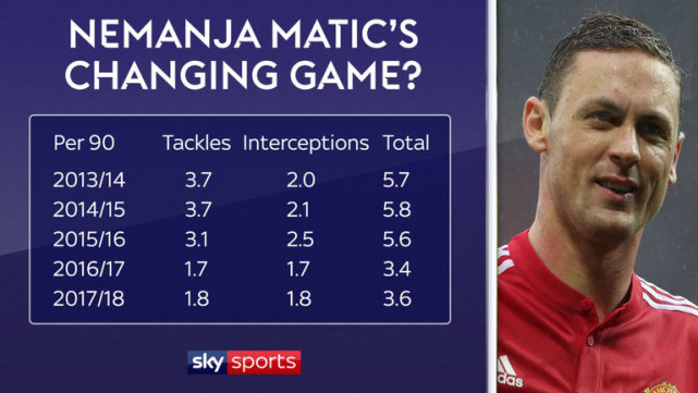 这样的数据或许会让人留下马蒂奇实力下降的印象。当然,切尔西的球迷和董事会一样都愿意接受为一名年近30岁的球员开出的4000万英镑的报价。但是,就像弗格森爵士曾经错误的认为斯塔姆的防守数据明显下降一样,马蒂奇的重要性也被低估了。