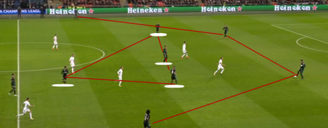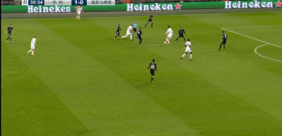 热刺的5-3-2阵型弹性很强,与赫罗纳几乎同理,都是依靠大范围的跑动和出色战术执行力得以保持。虽然和皇马相比热刺的中场不具备控球优势,但他们很好限制了皇马向核心区域通过快速的一脚传递渗透的能力。