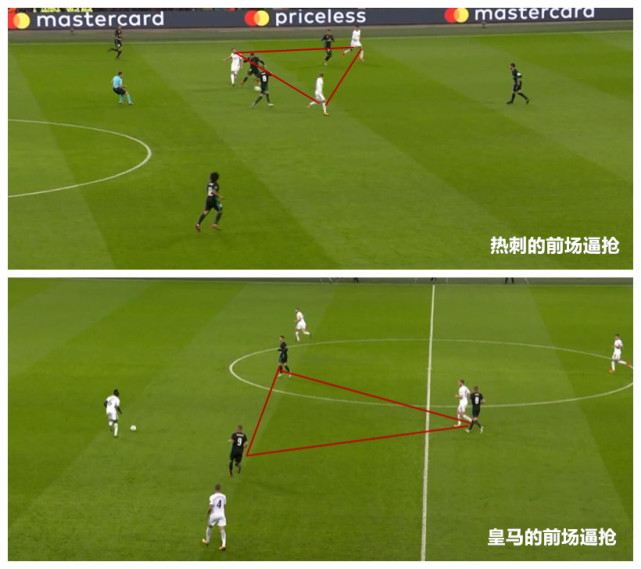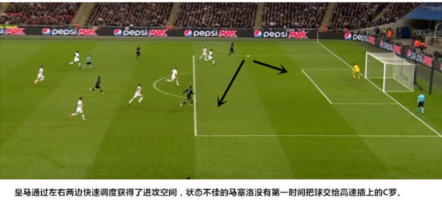 而且也通过左右调度抓住皇马回防到位率低的特点打出了威胁进攻。
