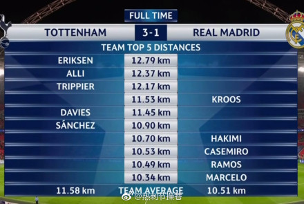热刺虽然技术层面相比皇马缺少优势,但他们的跑动距离远远高于皇马,阵型始终保持的非常紧凑。这场大胜并没有任何偶然因素,热刺做到了可以做到的一切。