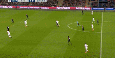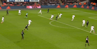 如以上两图凯恩和温克斯的射门都是热刺在前场依靠大范围跑动的逼抢之下形成的机会,并且越来越接近得分。