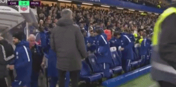 在这样一场都必须要赢下的比赛中,最终孔蒂和切尔西笑到了最后,凭借莫拉塔的头球破门,蓝军1-0拿到了3分。当主裁判吹响终场哨的那一刻,孔蒂激动的狂捶胸口,然后又向空中挥舞着手臂,穆里尼奥则努力保持淡定的站在球员通道口,葡萄牙人本来打算跟孔蒂握手,但是兴奋的孔蒂却完全无视狂人的存在,他直接冲进球场内跟弟子们庆祝起来。