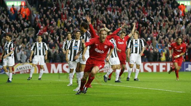 淘汰赛中,如果说6-2轻取勒沃库森是抽了个好签,那么八强赛中淘汰尤文图斯,是当之无愧的技术性压倒。那时候的卡佩罗率领的尤文图斯,拥有布冯、卡纳瓦罗、赞布罗塔、内德维德、皮耶罗和伊布拉希莫维奇这样的顶级球星,自然而然,开赛前很多人都认为利物浦的气数已尽。第一回合的主场作战,虽然贝尼特斯守住了胜利,但是他的门将没守住自家大门,让尤文带走一个客场进球,这也让大伙出发前往都灵时的心情变得沉甸甸的。次回合,本来就不被看好的利物浦,杰拉德的伤停,阿隆索又没有痊愈,海瑟尔惨案的旧恨……胜利的天平仿佛都在向尤文图斯这边倾斜,可是贝尼特斯利用一个诡异的变阵,让猝不及防的尤文图斯在主场全场跟着红军的脚步走,硬生生地吞下一场平局,目送对手晋级四强。