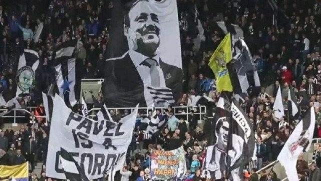 贝尼特斯的画像在喜鹊主场随风飘扬