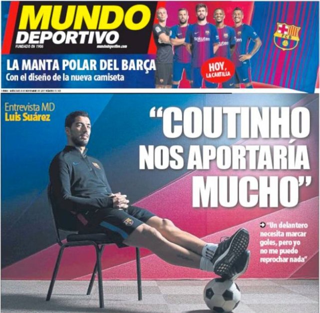 腾讯体育讯 北京时间11月8日,巴萨前锋苏亚雷斯接受了《世界体育报》的专访,苏神谈到了库蒂尼奥,他透露自己曾经和巴西中场聊过加盟巴萨的话题,苏神也透露,库蒂尼奥希望来巴萨,他也可以提升宇宙队的实力。