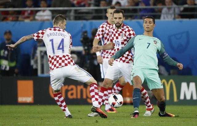 欧洲杯上巴代利和布罗佐维奇联合防守C罗