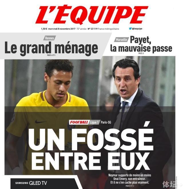 内马尔真的和埃梅里闹翻了!周三法国《队报》用头版报道了这个早已不是新闻的新闻。