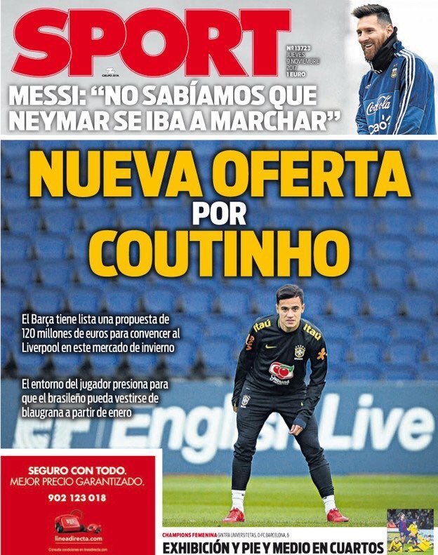 巴萨在今年夏天就苦追库蒂尼奥,但是利物浦一直将巴西人视为非卖品,不过按照《世界体育报》的说法,红军高层已经承诺库鸟,在1月份的冬窗,他可以离开安菲尔德球场,而库鸟本人则希望尽快加盟巴萨。