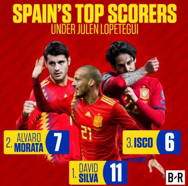 洛佩特吉执教后,席尔瓦14战11球,还有5次助攻,远超莫拉塔的7球,是队内头号射手,其中世界杯预选赛斩获5球,也与莫拉塔和迭戈-科斯塔并列队内第1。明年世界杯西班牙能否重塑昔日辉煌,席尔瓦发挥好坏将是决定性因素。