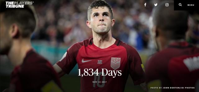 编者按:美国和荷兰、意大利等传统豪强一样,缺席了2018俄罗斯世界杯,虽说美国计划筹办“失意者世界杯”,但对于普利希奇等一众美国年轻球员来说,这相当于还需等待至少5年时间才能首次登上世界杯殿堂。这位多特蒙德边锋为此特意撰写了名为“1834天”的专栏,掰着手指头寄望光明的到来……