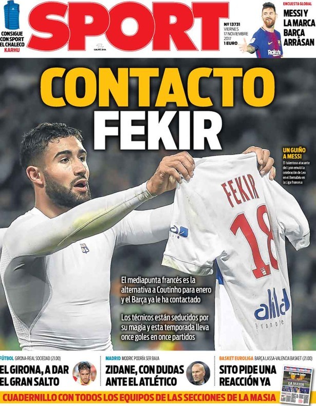 《每日体育报》在封面披露的一个人选是里昂的费基尔,这名法国国脚也被视为了库蒂尼奥不来的B计划。按照西媒的解读,巴萨技术部门非常喜欢费基尔,而这名中场球员可以出现在多个位置,也是前场的万金油,本赛季费基尔打入了11球,表现出色,也重返了法国国家队。