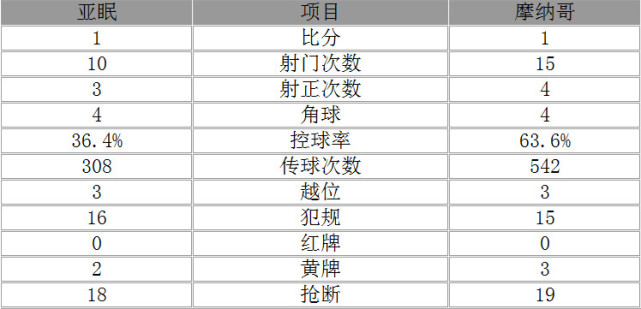 摩纳哥在客场遭到亚眠的顽强抵抗,伤愈复出的法尔考明显不在状态,多次错失机会。数据来看,摩纳哥射门15比10,射正4比33,控球率63.6%占优,最终平局的结果也是相对公平的。