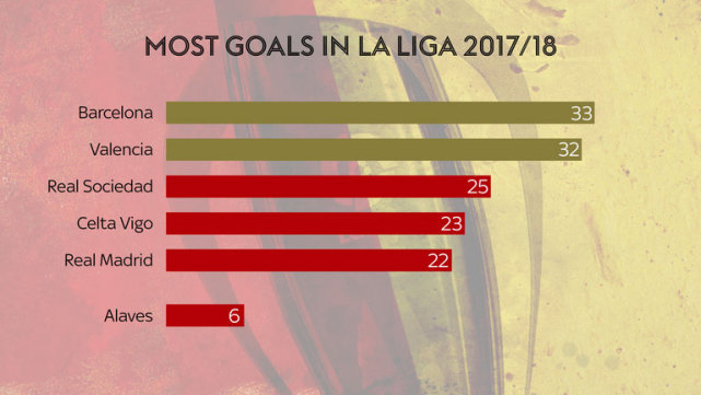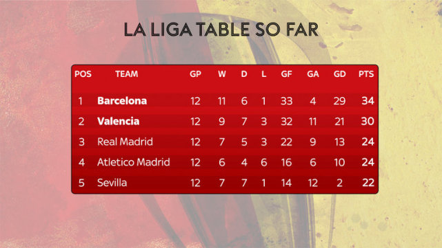 瓦伦西亚进球数仅次于巴萨位列西甲第二