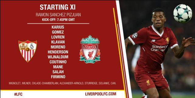 腾讯体育讯 北京时间11月22日凌晨3点45,2017-18赛季欧冠小组赛E组第5轮,利物浦做客挑战塞维利亚,双方首发阵容已经公布。
