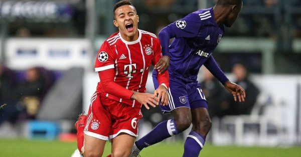 腾讯体育讯 拜仁2-1击败安德莱赫特,让海因克斯成就了一个德国籍主帅欧冠最长连胜的神纪录。但是让海因克斯非常烦恼的是,罗本、蒂亚戈两位核心球员集体伤退。而蒂亚戈的伤情很重,根据德国媒体预估,这可能是几个月才能回归的大伤。