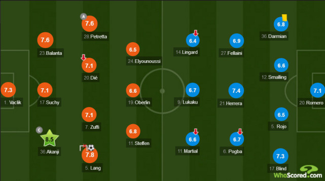 费莱尼缺少创造力,埃雷拉在三中场里面拖在最后,前场的林加德最擅长的是跑动而非创造,所以进攻组织的重任就交到博格巴一人身上。波霸第12分钟为卢卡库送出的妙传极具穿透性,不过这也是他唯一一记关键传球,表现与上轮联赛相比平淡许多,但这毕竟是他复出第二战,保险起见,穆帅第65分钟就将博格巴换下。