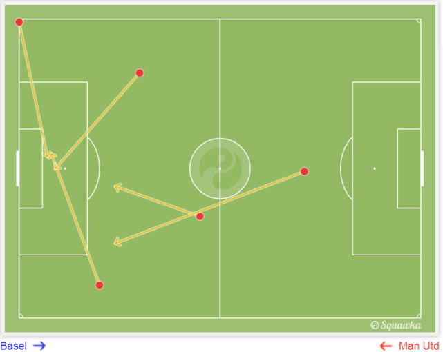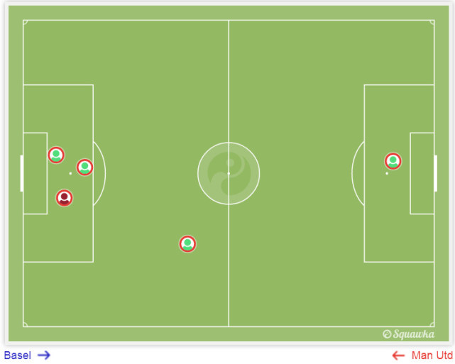 曼联的右路防守同样风声鹤唳。第67分钟,达米安解围直接送给对手,彼得雷塔左路传中,兰格后点力压布林德头球攻门,击中横梁弹出!红魔逃过一劫。然而穆帅没有对边后卫进行调整,最终在第89分钟受到惩罚:巴塞尔左翼卫彼得雷塔禁区左侧传中,皮球横穿曼联防线,兰格后点小角度推射空门得手,绝杀!