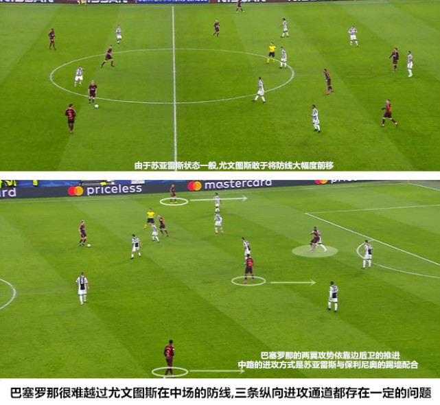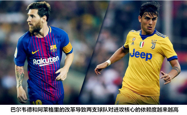 比赛的一方长期连续数季持续推动控球战术的升级、本季彻底切换到了以攻代守的比赛模式,比赛的另一方在新帅的带领下变阵442进一步明确了在两个禁区内解决战斗的思想,这是一场非典型性的意西决,也是阿莱格里和巴尔韦德打造的这两支“新军”的又一场成人礼。在失去了博努奇且补充了多名攻击好手之后,尤文图斯已经变成了一支依靠进攻为防守解压的球队;恩里克时代的巴塞罗那就已经开始在强强对话中打反击,内马尔的离队让巴尔韦德变得比前任更加务实,红蓝新帅在进攻中的首选战术就是快速通过中场为锋线球员创造机会。