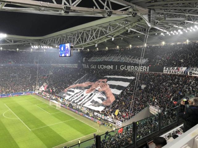 比赛开始前,尤文球迷展示了为本场比赛特意准备的巨型Tifo,曼朱基奇巨幅画像上用意大利语写着“男人中的战士们”,这是即使对克罗地亚人球风的肯定,也希望激励尤文球员在今天的比赛中全力以赴,忘记在国家队比赛的伤痛,像一个勇士一样去战斗。不过令人失望的是,Tifo上的曼朱基奇本场比赛并没有出场,看来以后再准备Tifo的时候,尤文球迷还要再花多些心思才行。